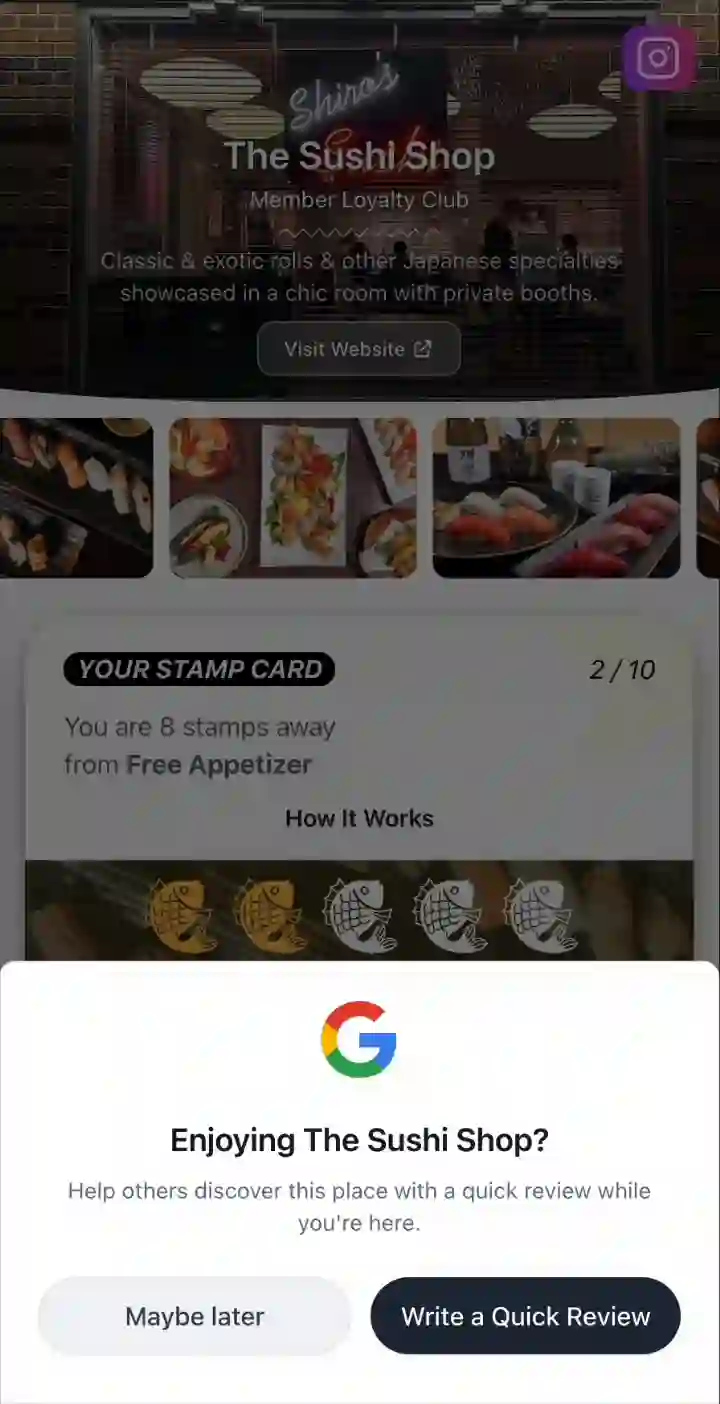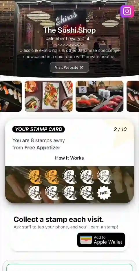 Digital stamp card in their wallet. Every visit = stamps + optional scratch & win. Fun that brings them back.